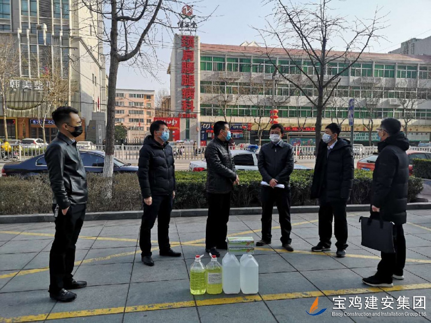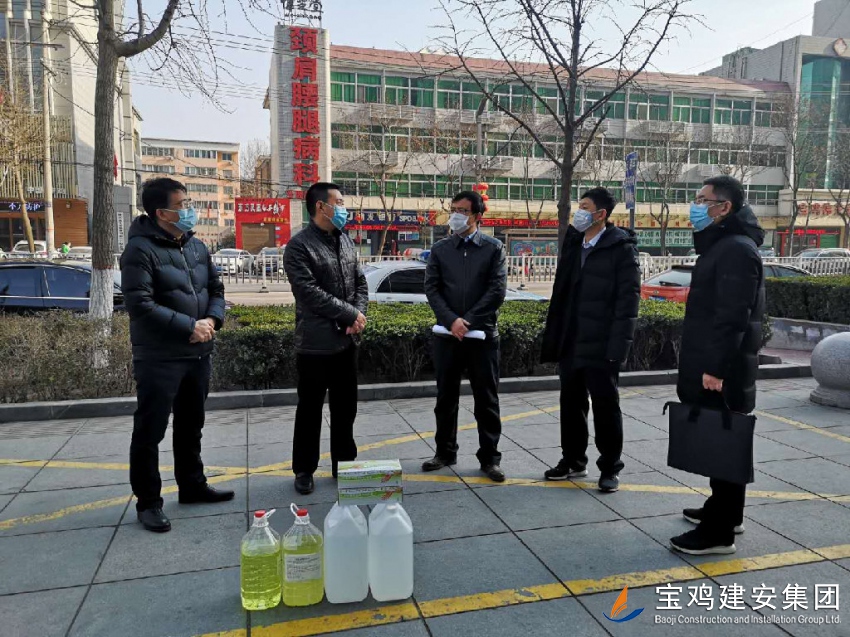 在辦公區(qū)周邊,渭濱區(qū)、橋南辦領(lǐng)導(dǎo)對(duì)我司的復(fù)工防控情況進(jìn)行了仔細(xì)詢問,并就防控具體措施、注意事項(xiàng)、安全隱患、規(guī)避方法等予以明確要求、悉心指導(dǎo),強(qiáng)調(diào)嚴(yán)格落實(shí)疫情防控工作,切勿放過任何一個(gè)細(xì)節(jié)。并為我司送來了兩桶84消毒液、兩桶75%的酒精以及兩盒一次性手套。